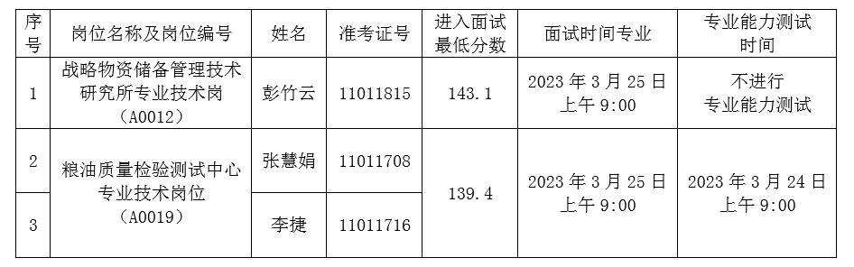請(qǐng)遞補(bǔ)考生按照《國(guó)家糧食和物資儲(chǔ)備局科學(xué)研究院2023年度畢業(yè)生公開招聘面試公告》的要求,于3月20日17時(shí)前確認(rèn)并報(bào)送相關(guān)材料,按時(shí)參加專業(yè)能力測(cè)試和面試。